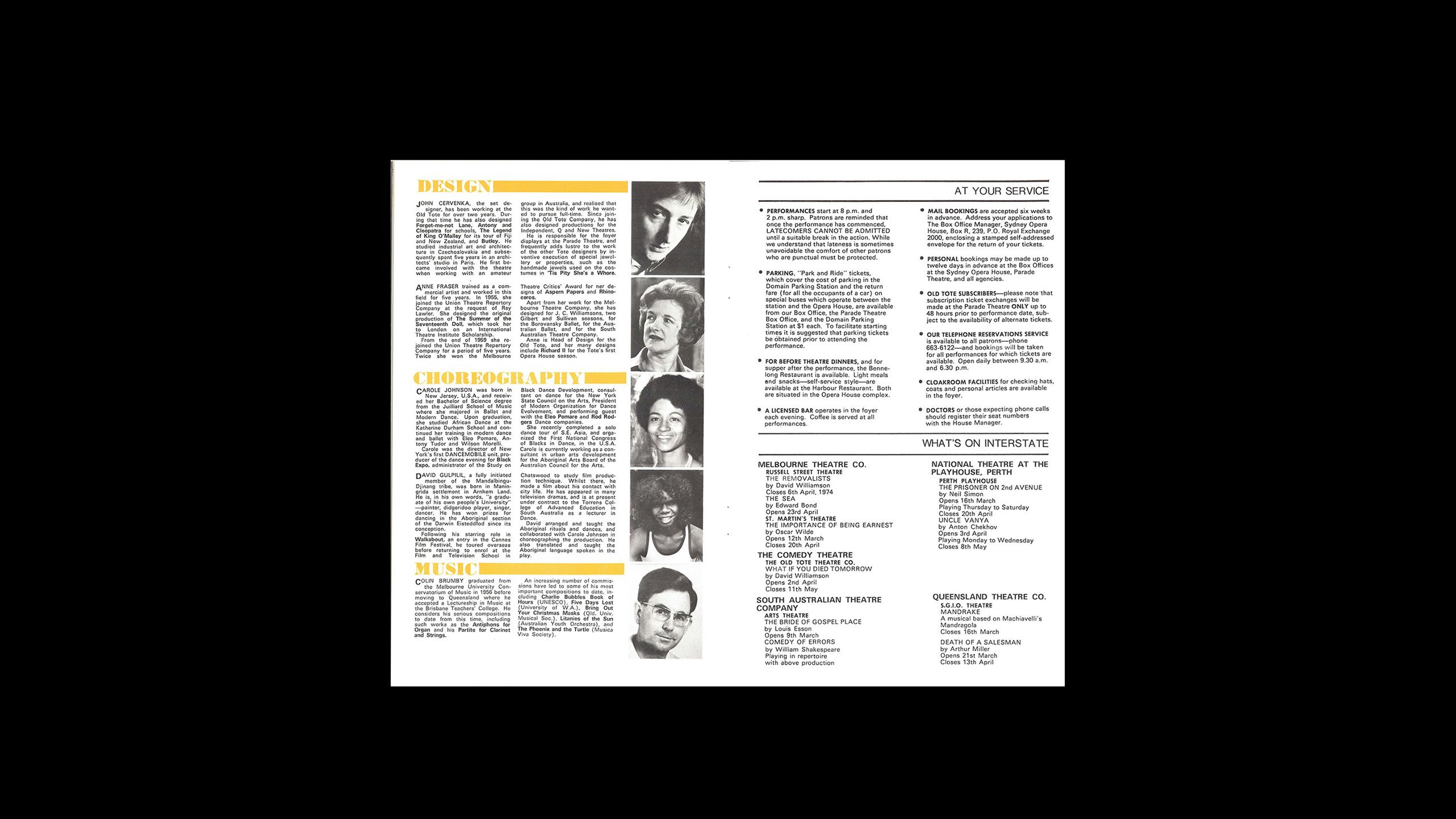 The Opera House archives show actors Jack Charles, Silvia Doolan, Alanna Coorey and Zac Martin appeared in the production, alongside a young Yolngu dancer named David Gulpilil—three years after he starred in the Cannes-nominated film Walkabout.