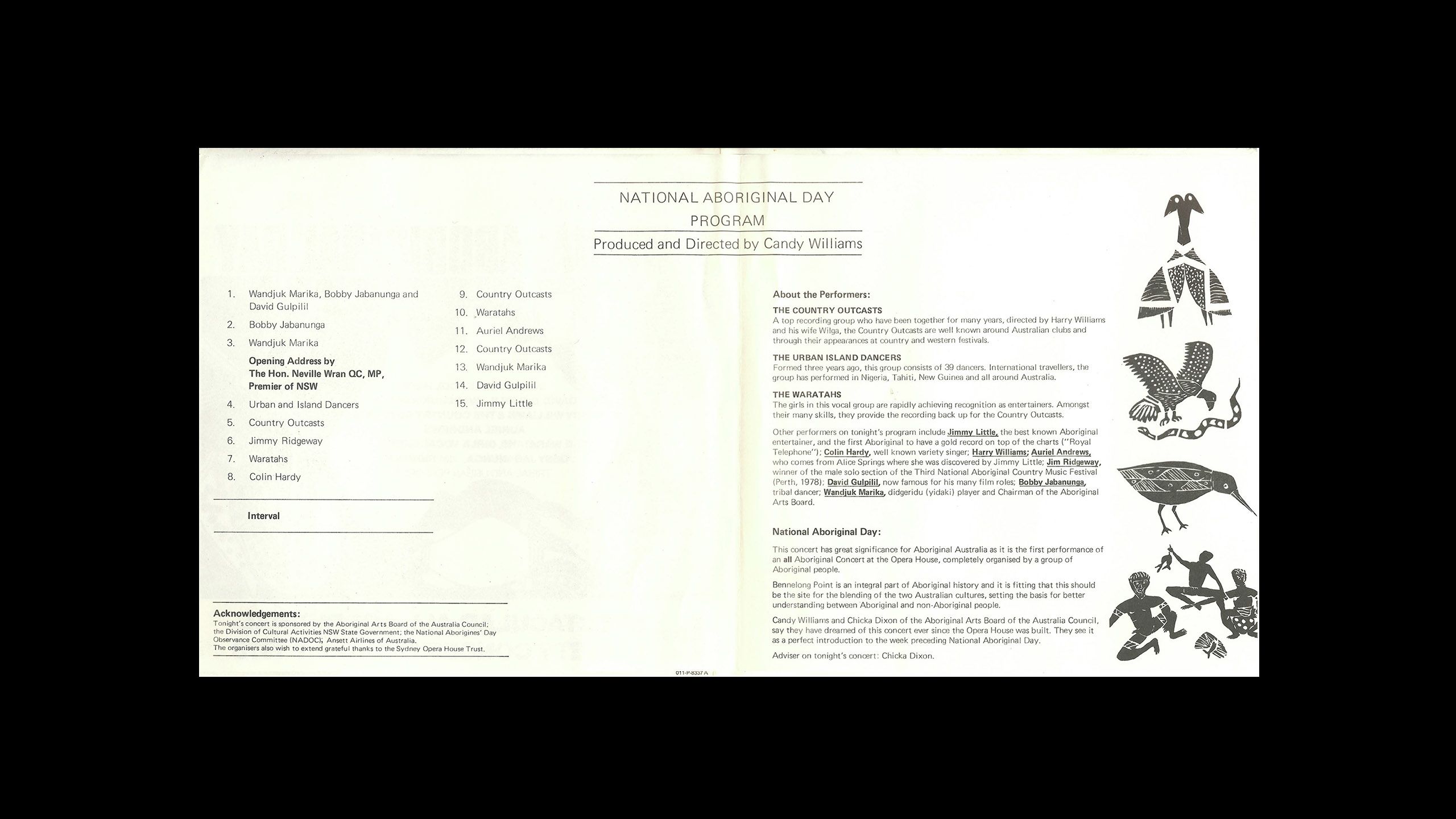 But what of Australia’s First Peoples and First Nations culture? How does a cultural institution like the Opera House celebrate First Nations work, or more specifically works for the stage? Has it always done so?