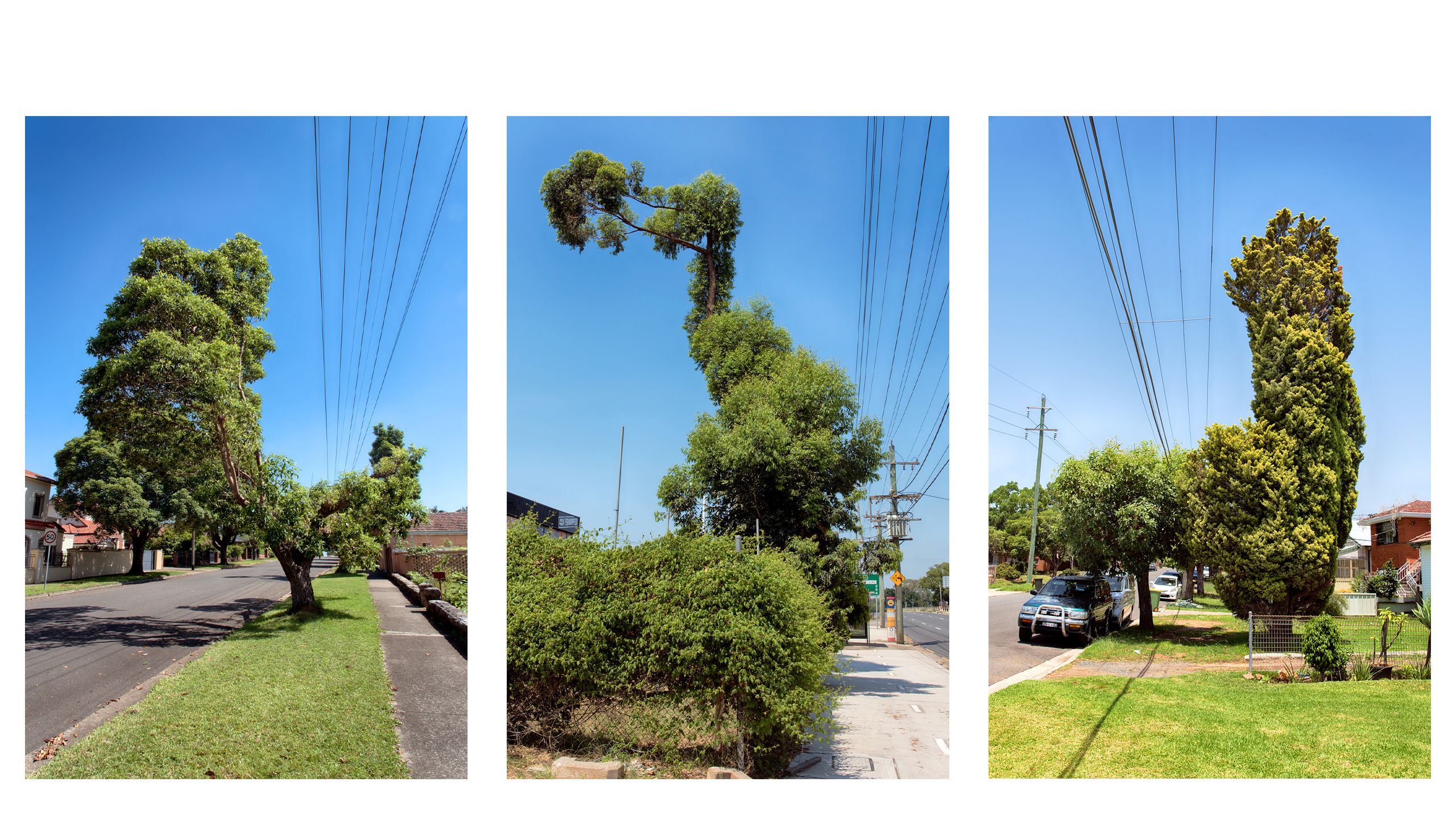 Artist Garry Trinh’s Giant Bonsai (2011 - ) is an ongoing photographic project that celebrates the incidental charms of creative urban vegetation pruning in Sydney. Using the act of Flânerie, the process of deep looking while strolling, Trinh has wandered across suburbs, across cultures and across contexts throughout Sydney to document these charming moments of suburban landscaping.