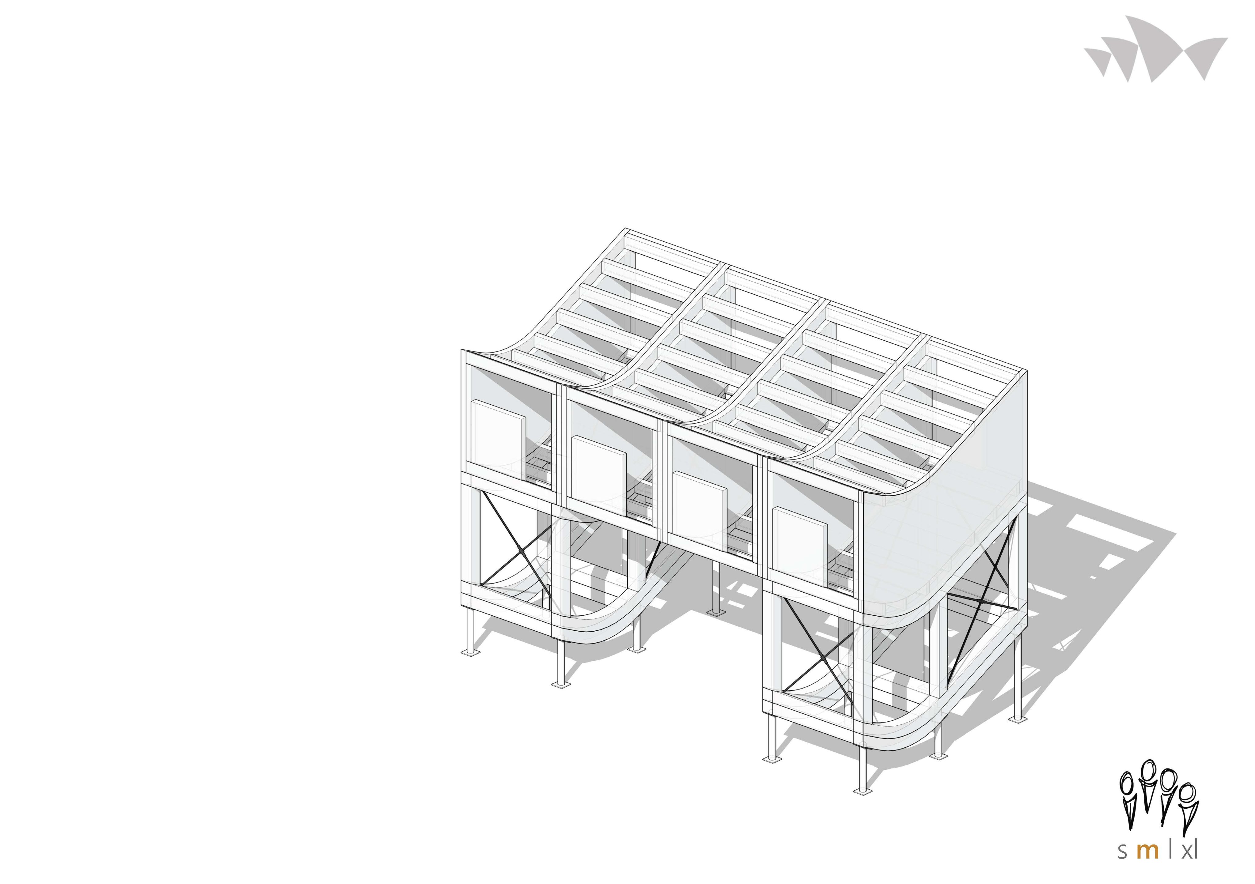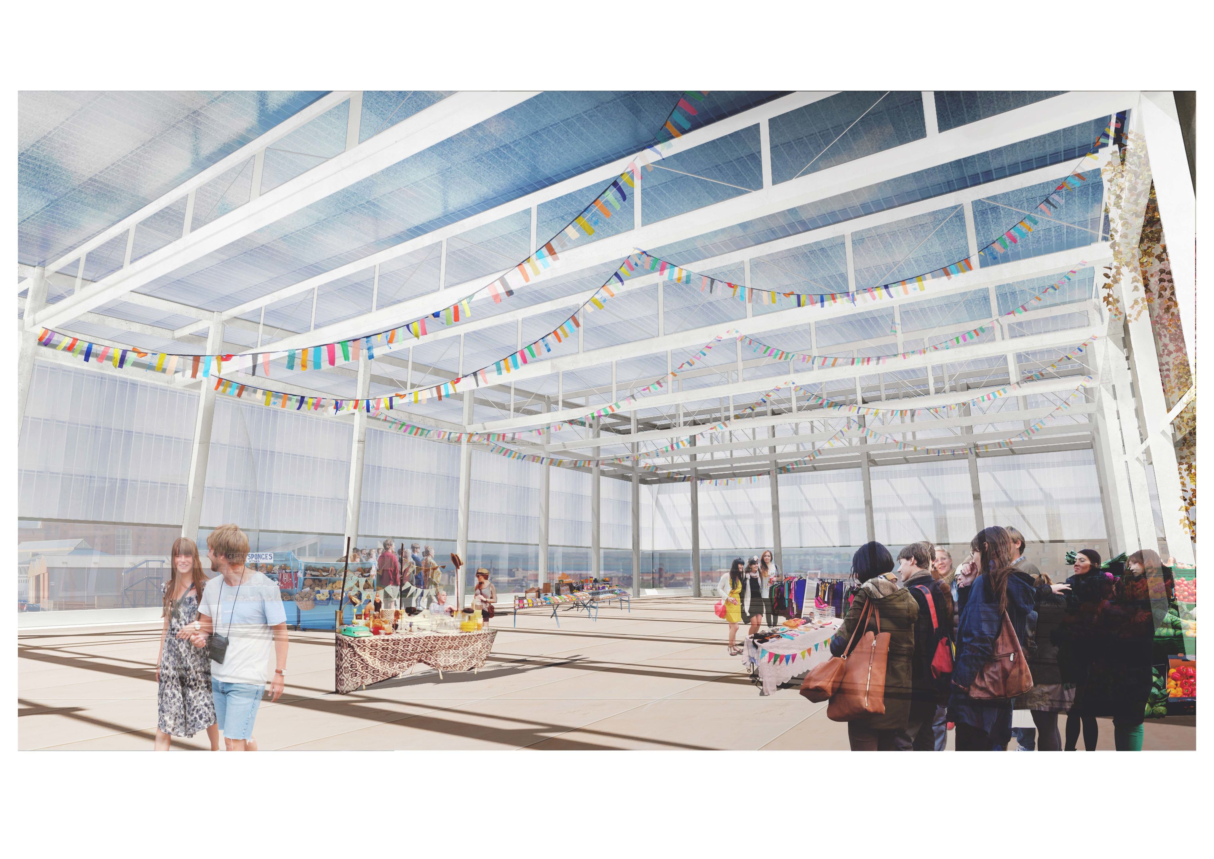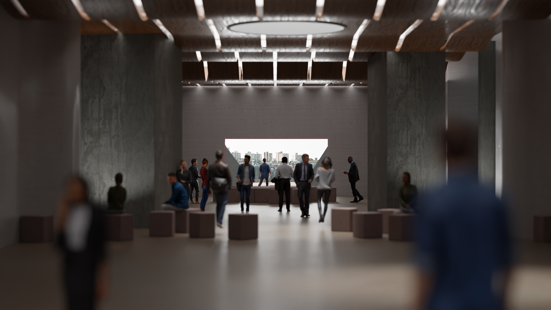 Our proposal was for a ‘People’s House’ — a mixed-use, cultural, entertainment and collaboration hub within the existing the Aller Media Building footprint, linking work to city, and city to people. Tactical modifications to the ground plane soften the existing promenades and curtain wall, strengthening a pathway from plaza to water’s edge. To maintain carbon neutrality throughout these evolutions, we proposed a moulded exoskeleton to cover the building facade. Inside, among flexible floor plates are prototyping facilities, and knowledge sharing hubs as points of contact and collaboration.