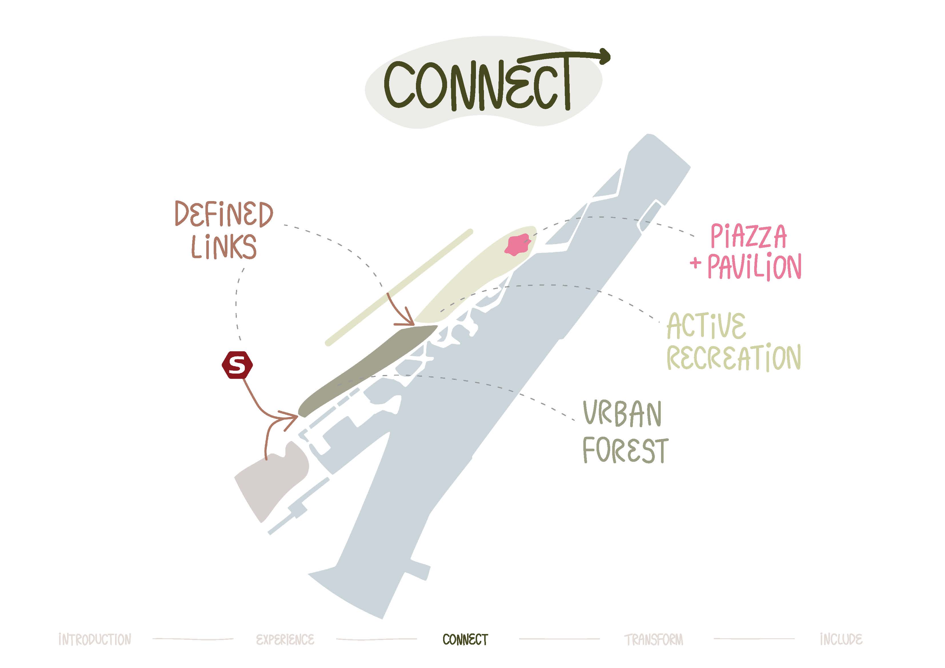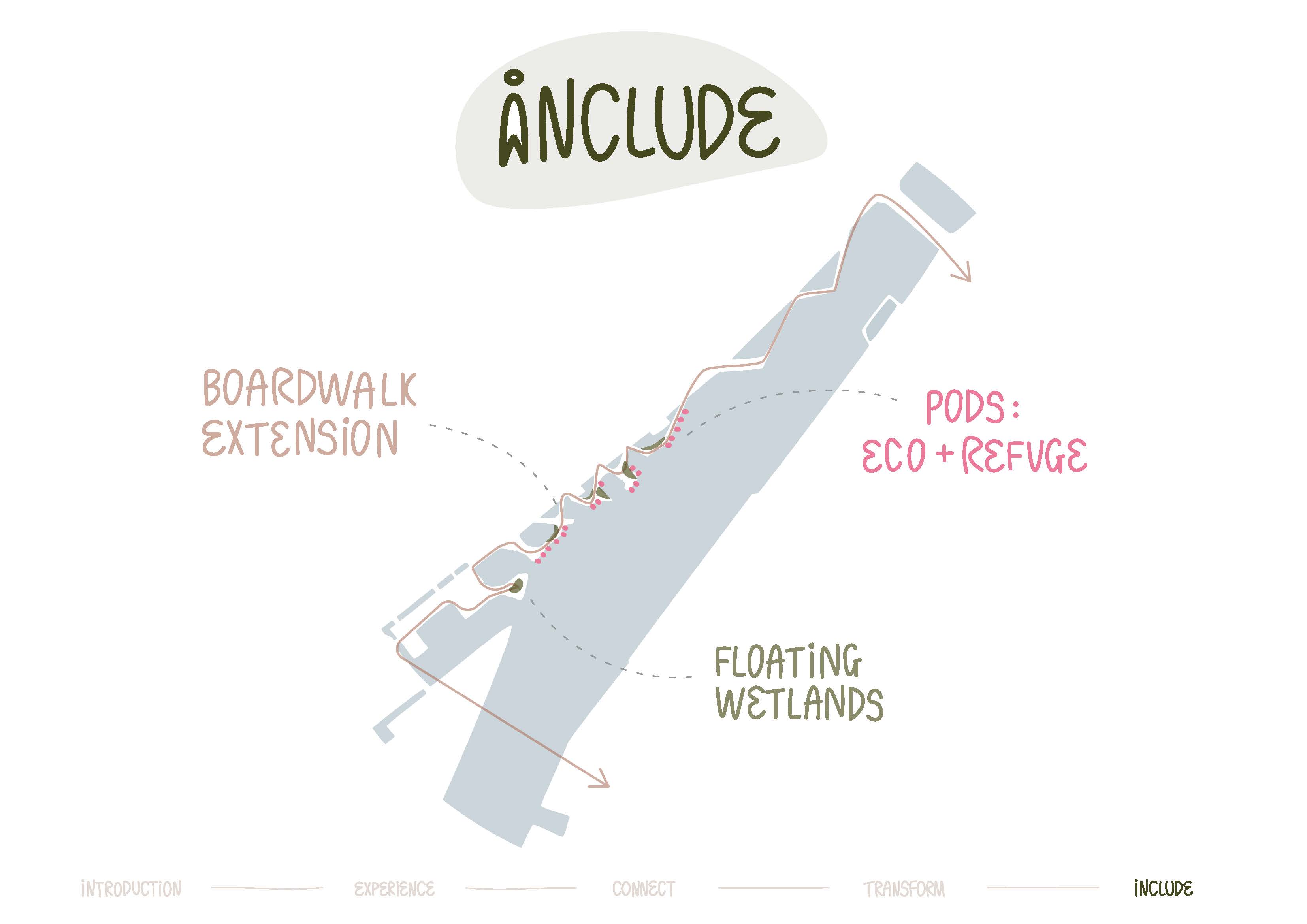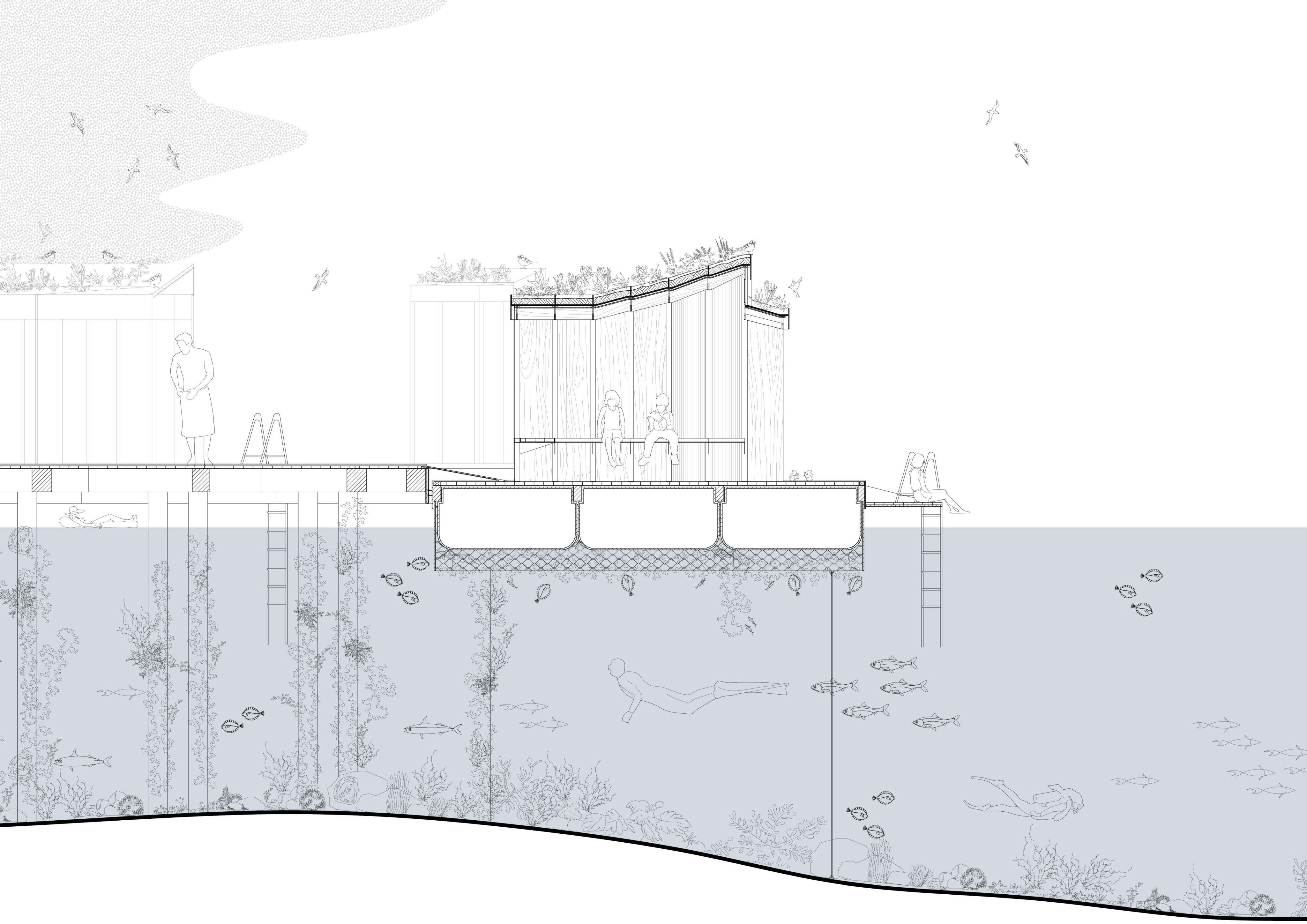 Our approach was to revitalise natural spaces within a heavily built-up environment. We saw an opportunity to create spaces not currently seen in the harbour-front typology, something that celebrates the diversity of people and those who seek refuge, while also caring for native species in the area.