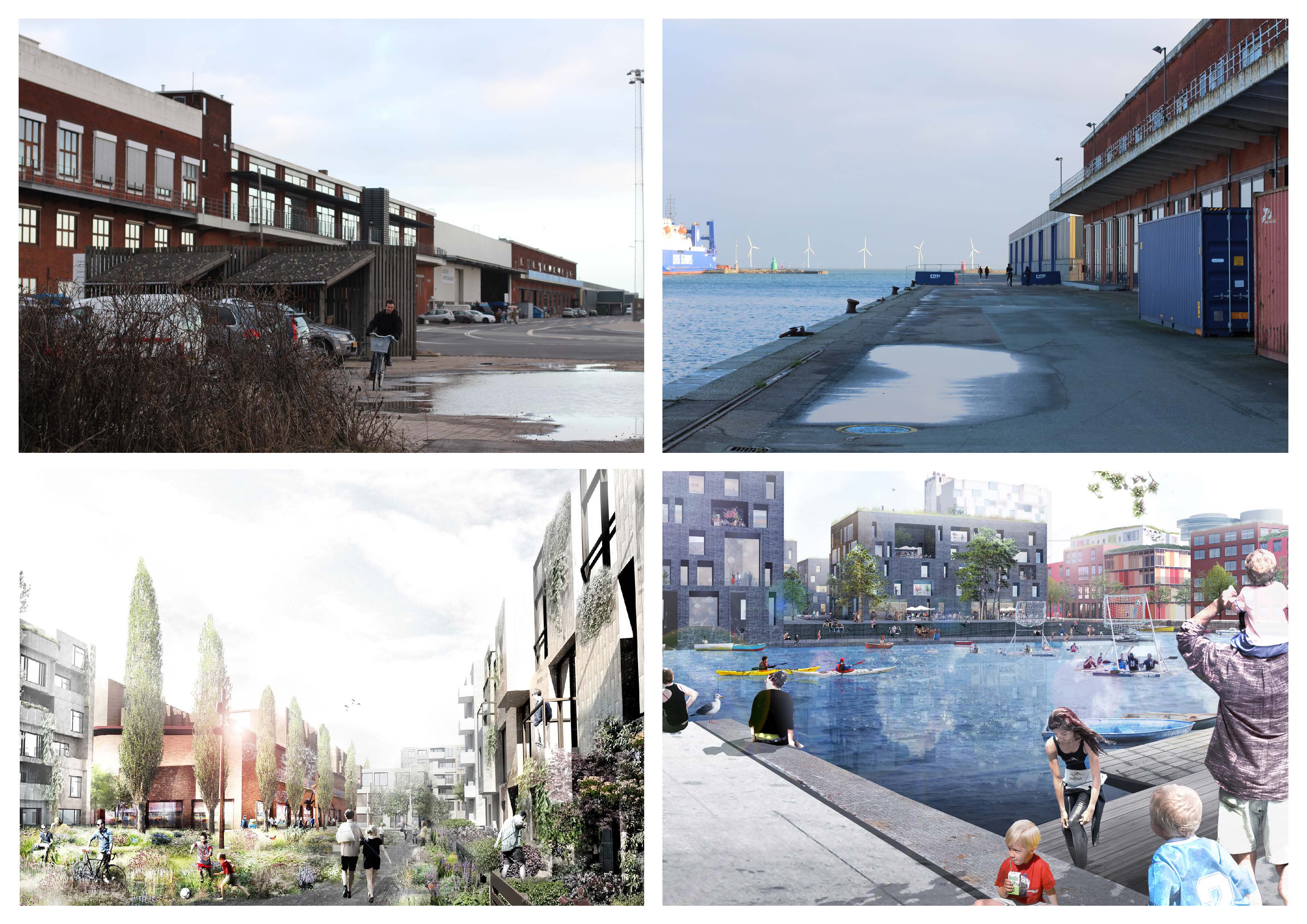 Imagine a future use and development of the site of Pakhus 54, following the main principles of the Nordhavn strategy to achieve a sustainable, liveable city. The program must be mixed-use, with both housing and a public cultural function. The site has to be densified, and its existing warehouse preserved, at least partially. The program must preserve and enhance the qualities of the future surrounding public spaces and sidewalks, and include good outdoor space for residents.