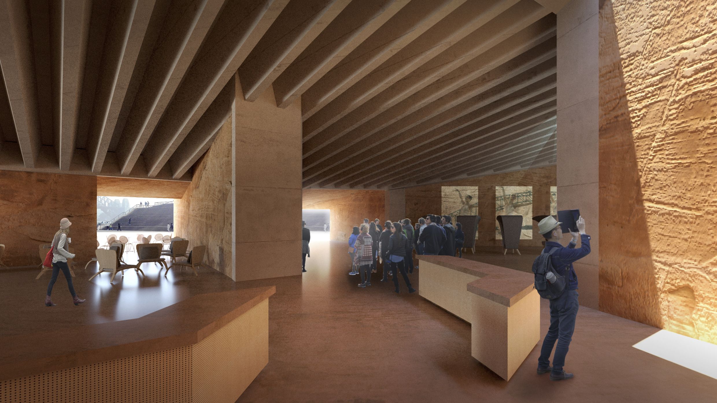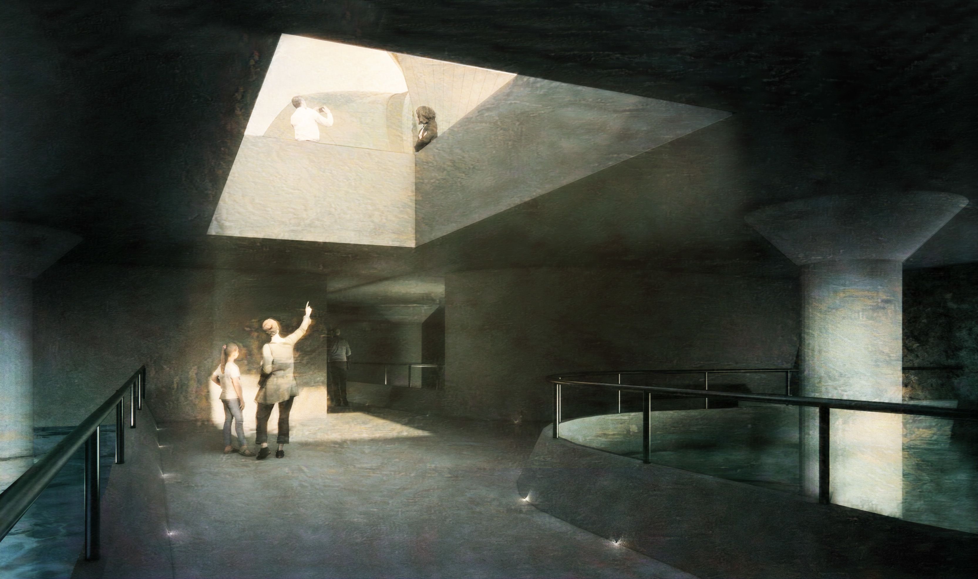 Instead of working with the appointed site, we suggested a visitor center inside the tarpeian wall across from the grand staircase, in connection with the forecourt where you find the most pedestrian activity. This would allow the visitor to experience arrival at the grand staircase as Jørn Utzon intended — to then turn around to discover the new Welcome Centre, leading them into the building.