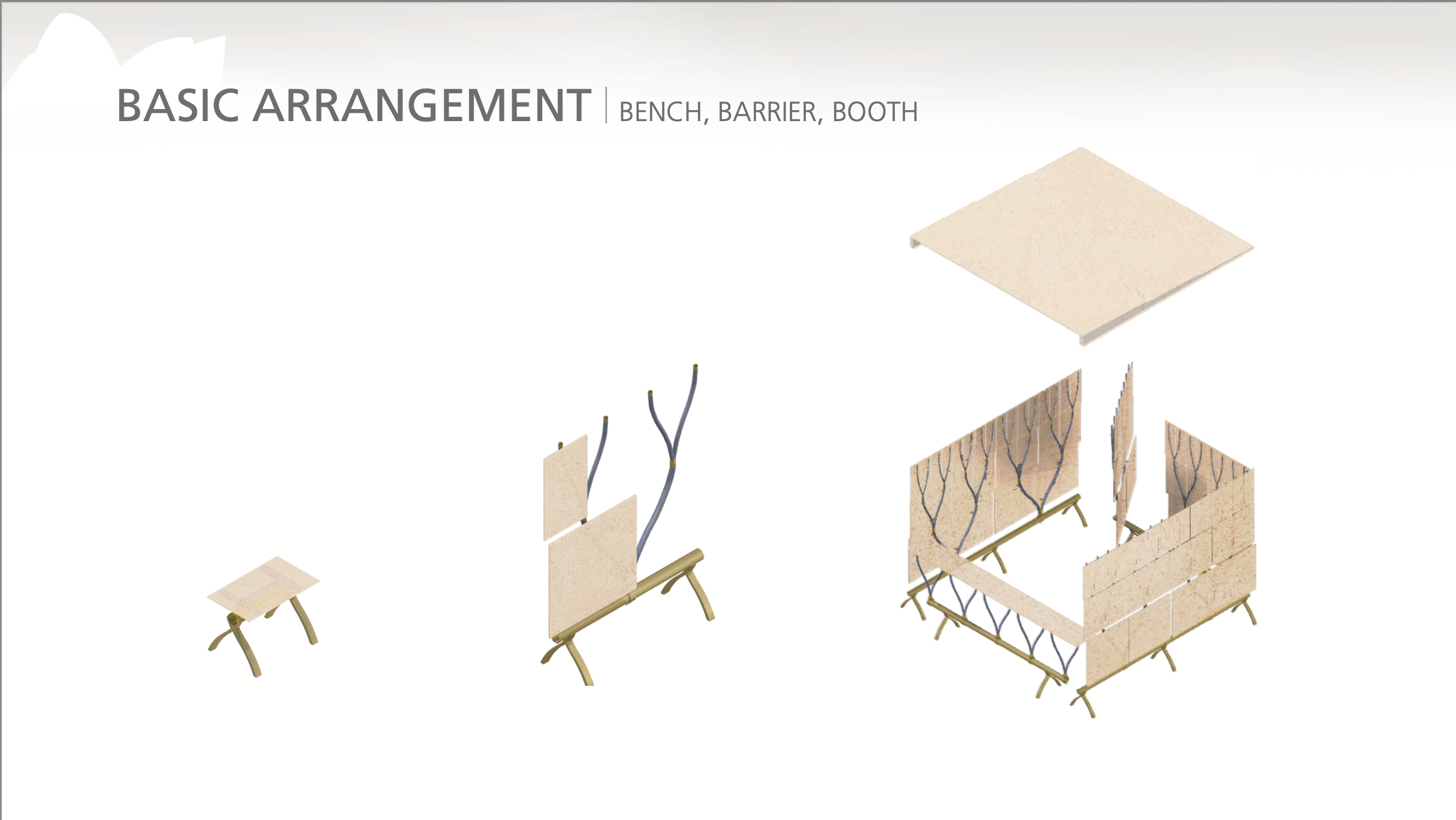 Based on our observation and analysis of defining ground rules, we proposed a modular kit of parts that performs the three ‘Bs’: barrier, bench and booth. Our functionality-based proposal included studies of materials, colour, modular extension, wind practicality and jointing system. This was compiled into a catalogue of 19 elements with assembly instruction, an on-site placement rules including guidelines for interactive and adaptation to event type and scale.