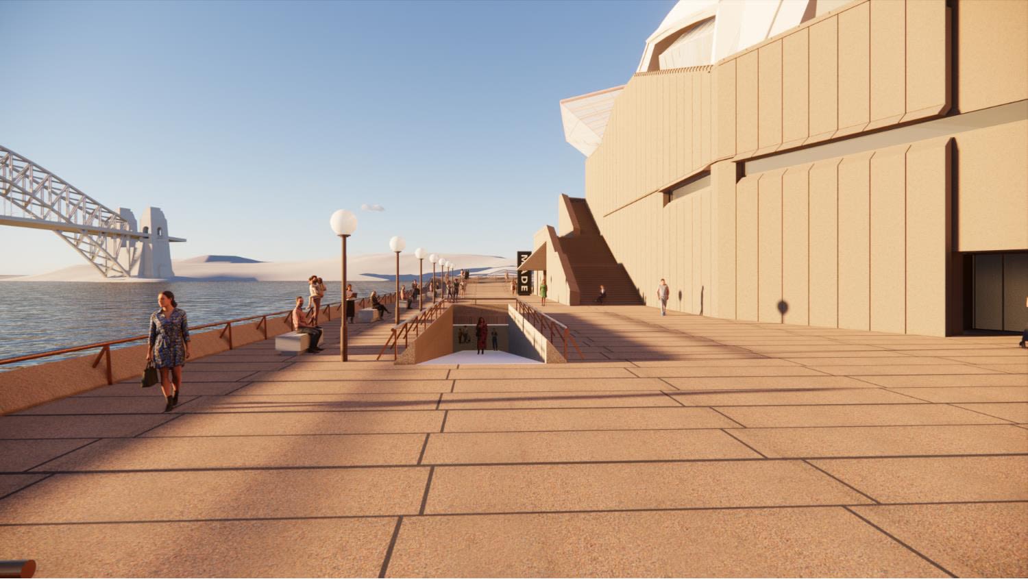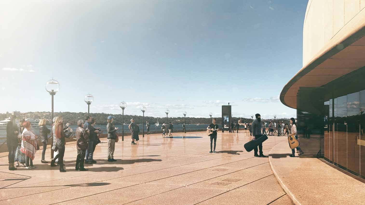 Entitled Under the Steps, our proposal was for an exterior foyer that enhances Utzon’s intended visitor journey from the ordinary to the extraordinary worlds. A multifunctional space that can be used for pop-up outdoor events, pop-up street food, a gathering point for locals, exhibitions of concerts in the Opera House and more.