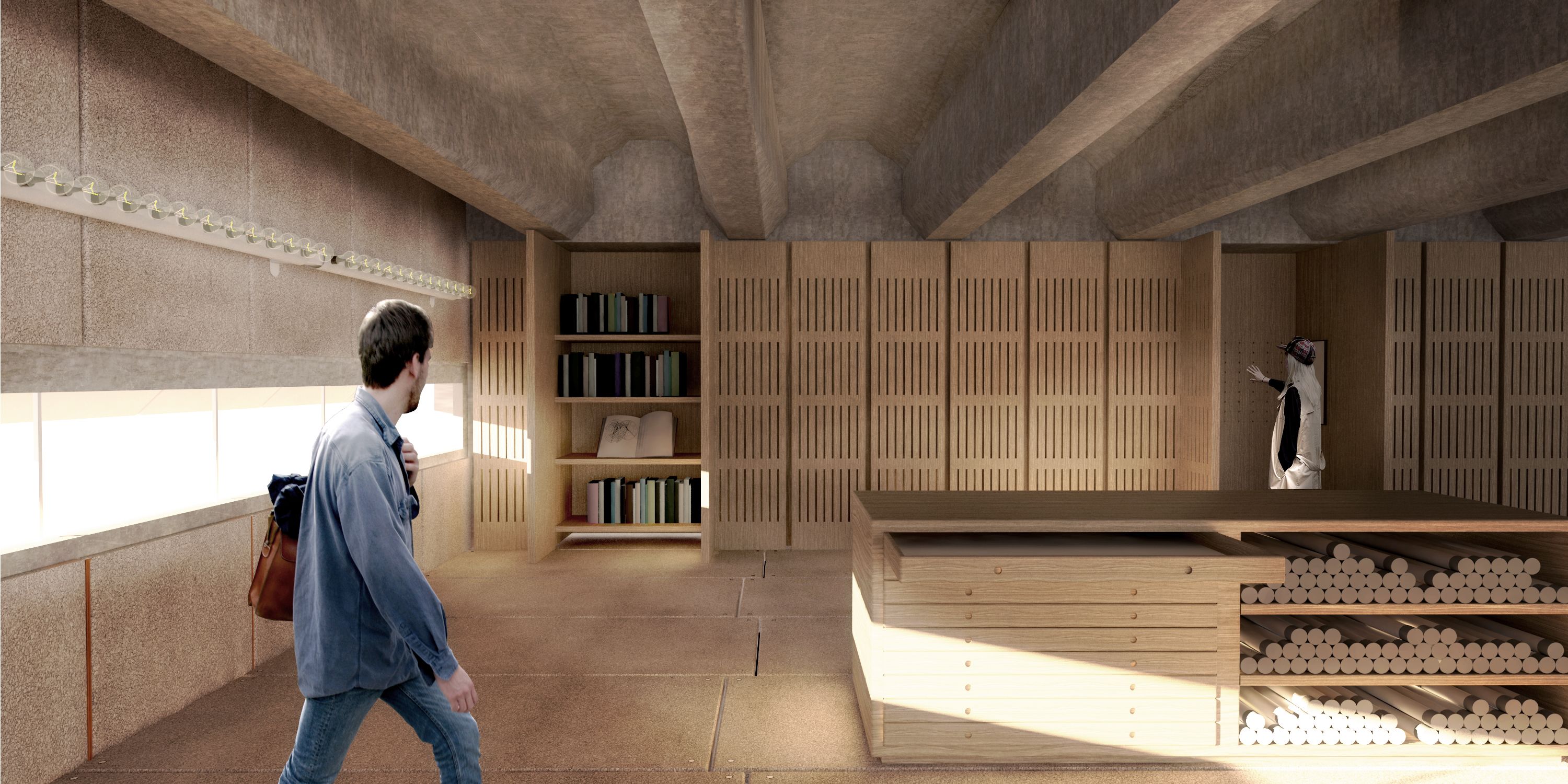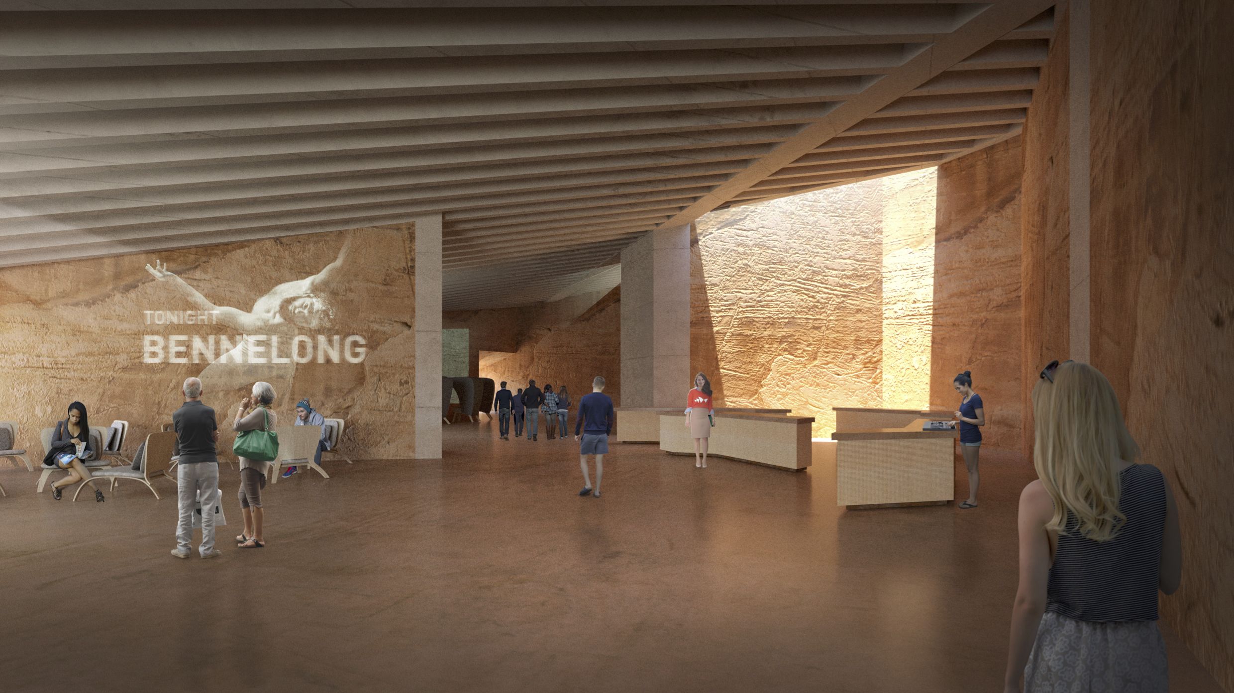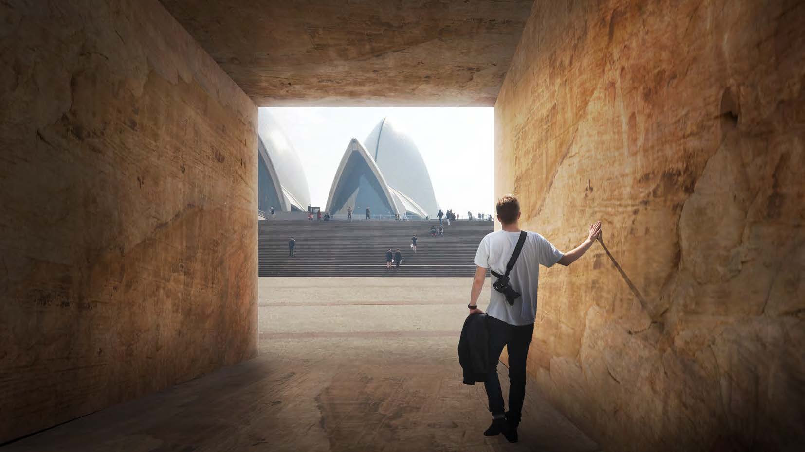 In the new Welcome Centre, visitors can explore the history of the site and building, and its artistic programs, as a teaser for the main experience inside the Opera House. The Centre is gently carved into the sandstone of the tarpeian wall along existing car parking spaces, increasing accessibility, without altering the building. Inspired by Can Lis, openings of the Centre would frame views of the Sydney Harbour Bridge and the Opera House, while guiding visitors from Circular Quay. The sandstone walls, the construction, the furniture, and pedestrian path is all designed to enhance the experience of arriving at the Opera House, and hopefully offer a deeper understanding of Bennelong Point, and its influence on Utzon’s design.
