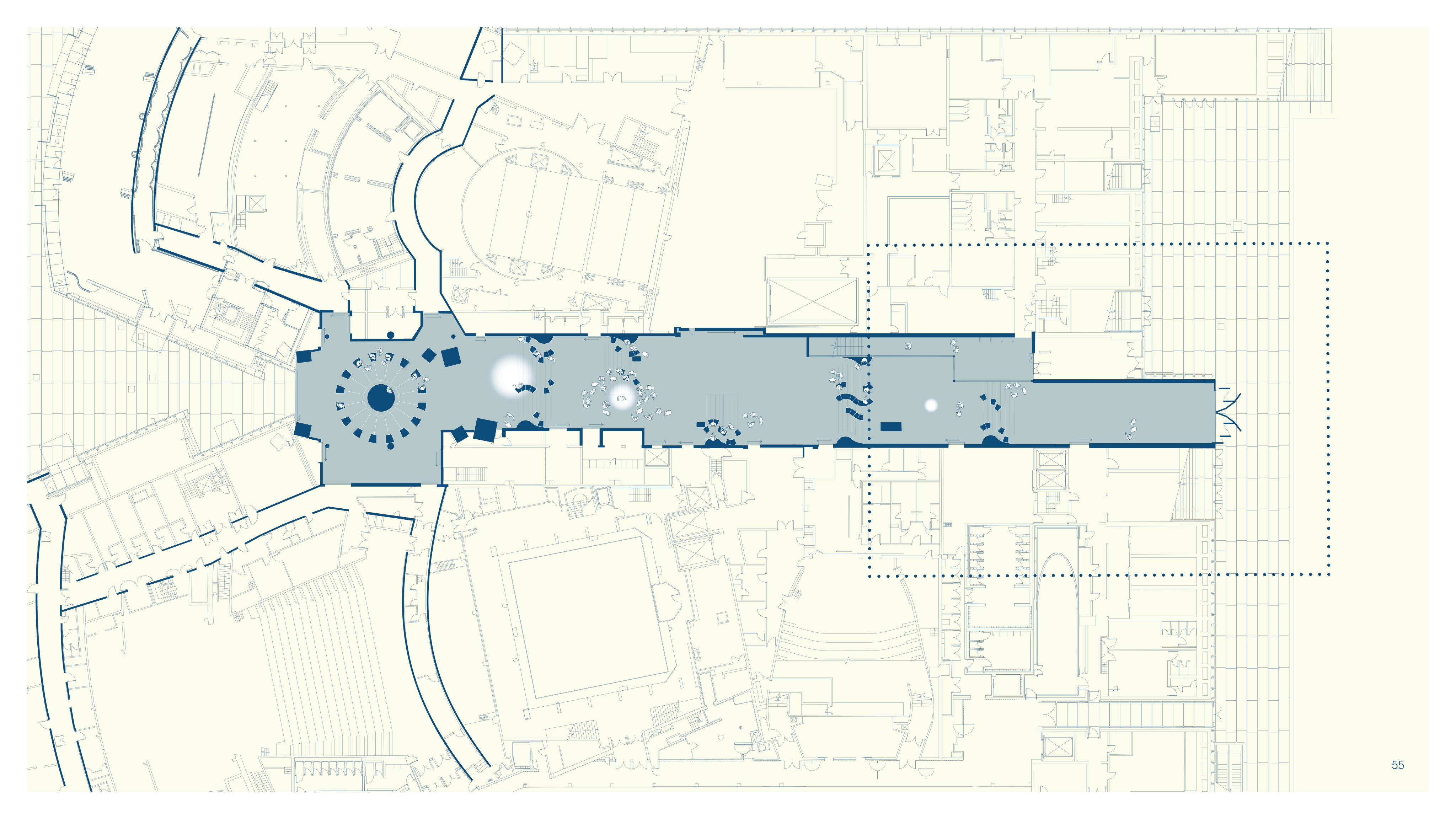 With fresh eyes, we did a thorough mapping of objects and obstacles that cluttered the spaces, referencing a flow study that traced both the ‘bucket-list visitor' and ‘opera enthusiast’. We also dug into Utzon’s original drawings and visions in dialogue with (for example) Glenn Murcutt and Rick Leplastrier.