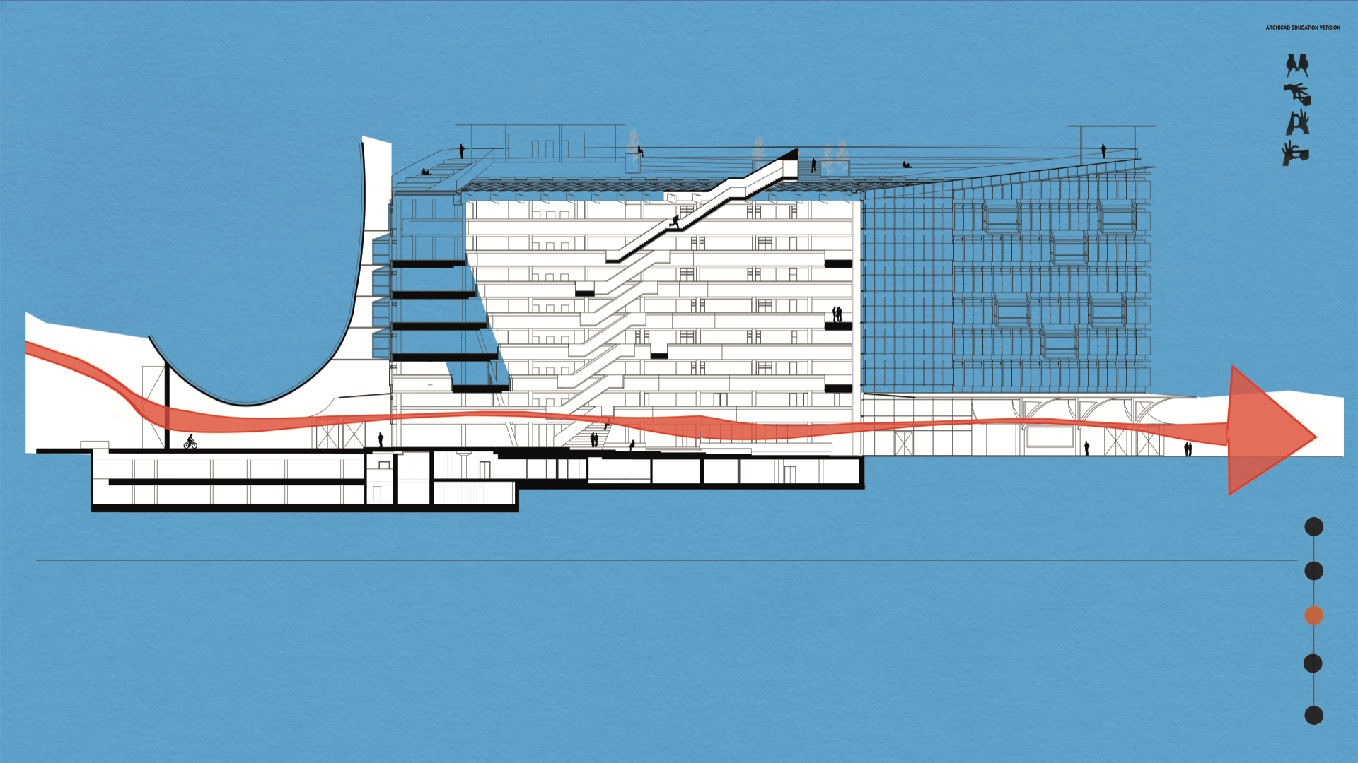 Students are asked to investigate the harbour area Kalvebod Brygge in Copenhagen and propose an urban transformation strategy, including a proposal for transforming one of its existing buildings (focussing mainly on the ground floor). The overall focus is to create a socially inclusive and environmentally sustainable urban area that connects to the surrounding city, making it accessible and relevant for the greater Copenhagen. The task is divided into three distinct scales: urban scale, building scale, human scale.