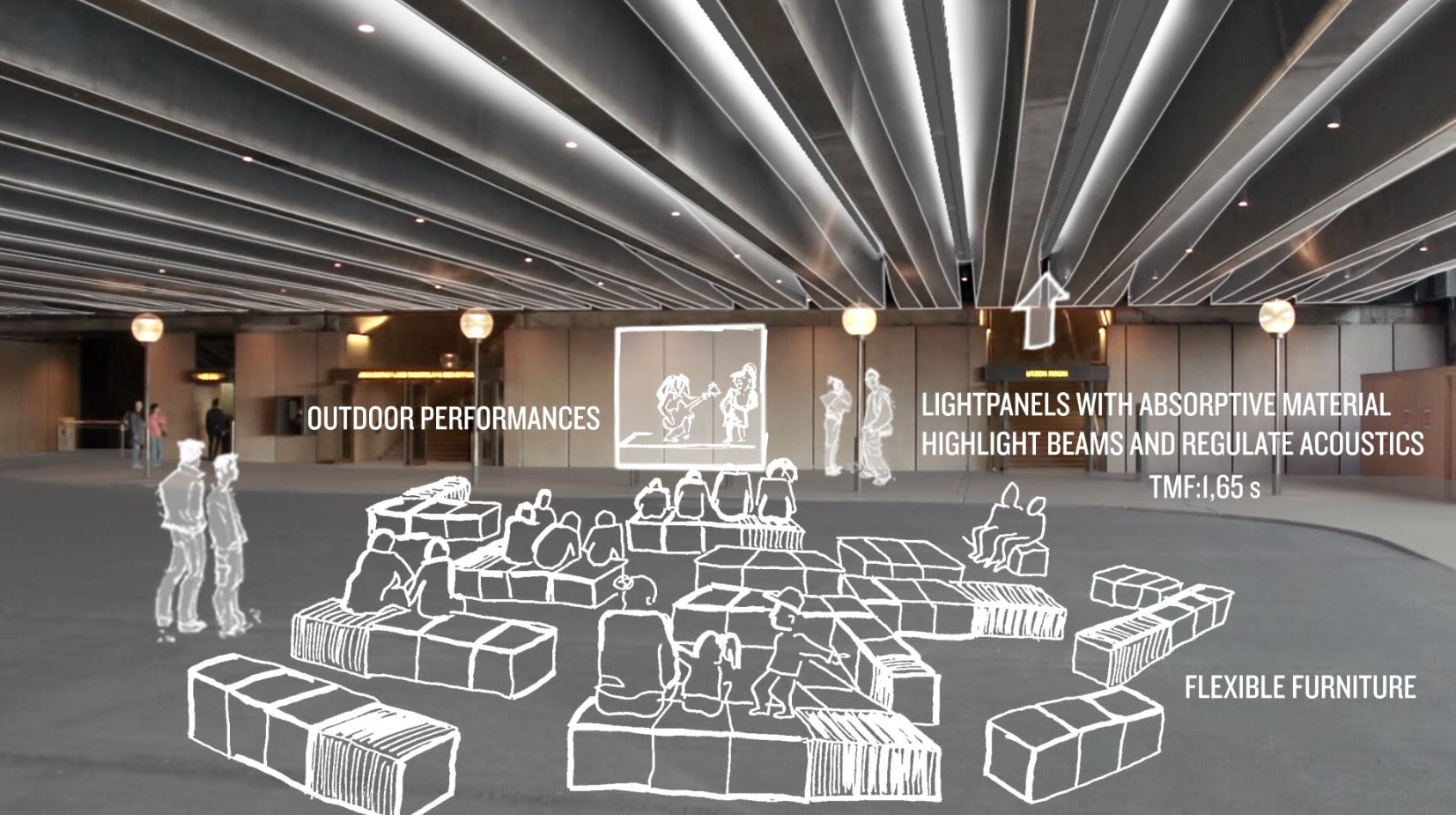 The task is to transform the Vehicle Concourse of the Sydney Opera House into a vibrant visitor’s destination called ‘Under the Steps’ — a pedestrian-oriented space that enhances the overall visitor experience at Sydney Opera House. Under the Steps is envisaged as flexible space catering for visitor arrival and entry into the building, formal and informal events, productions and public gatherings.