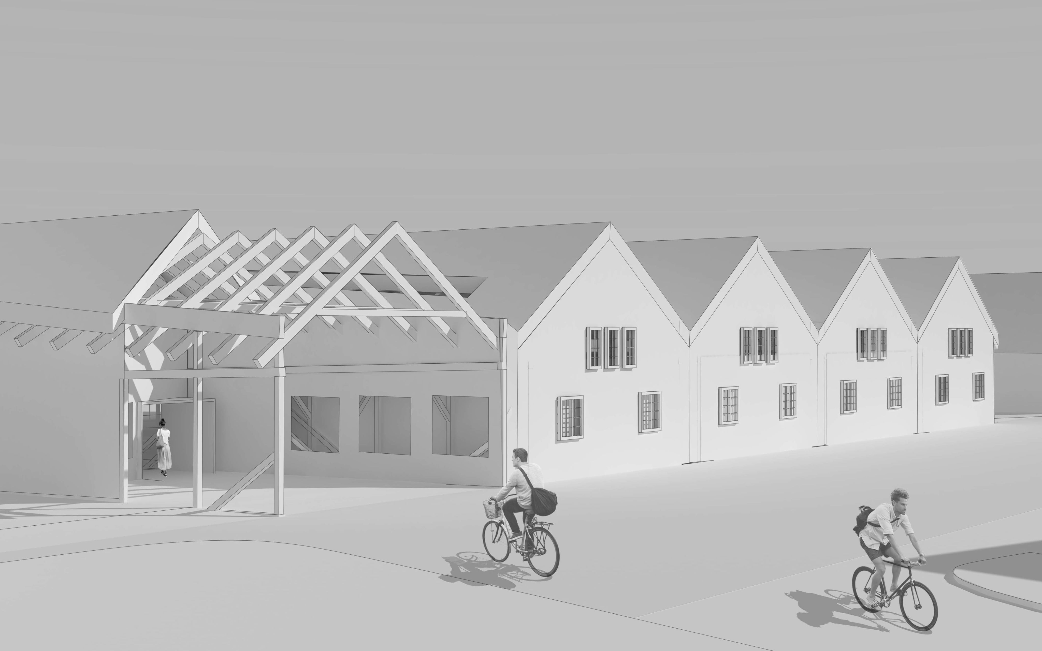 Holmen (Danish: The Islet) is a water-bound neighbourhood in Copenhagen, occupying the former grounds of the Royal Naval Base and Dockyards. Students are tasked with creating a new co-working space here, in what is rapidly becoming a vibrant, mixed-use part of the city. Three topics must be explored in developing the proposal: social, environmental and historical sustainability, and the floor space should be increased by 50 percent.